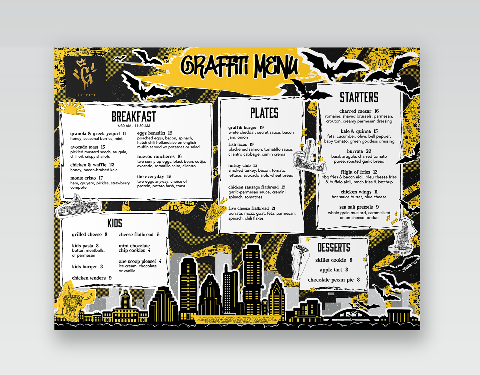 Branding collateral for the Cambria Austin Downtown hotel, as well as the hotel restaurant and bar.